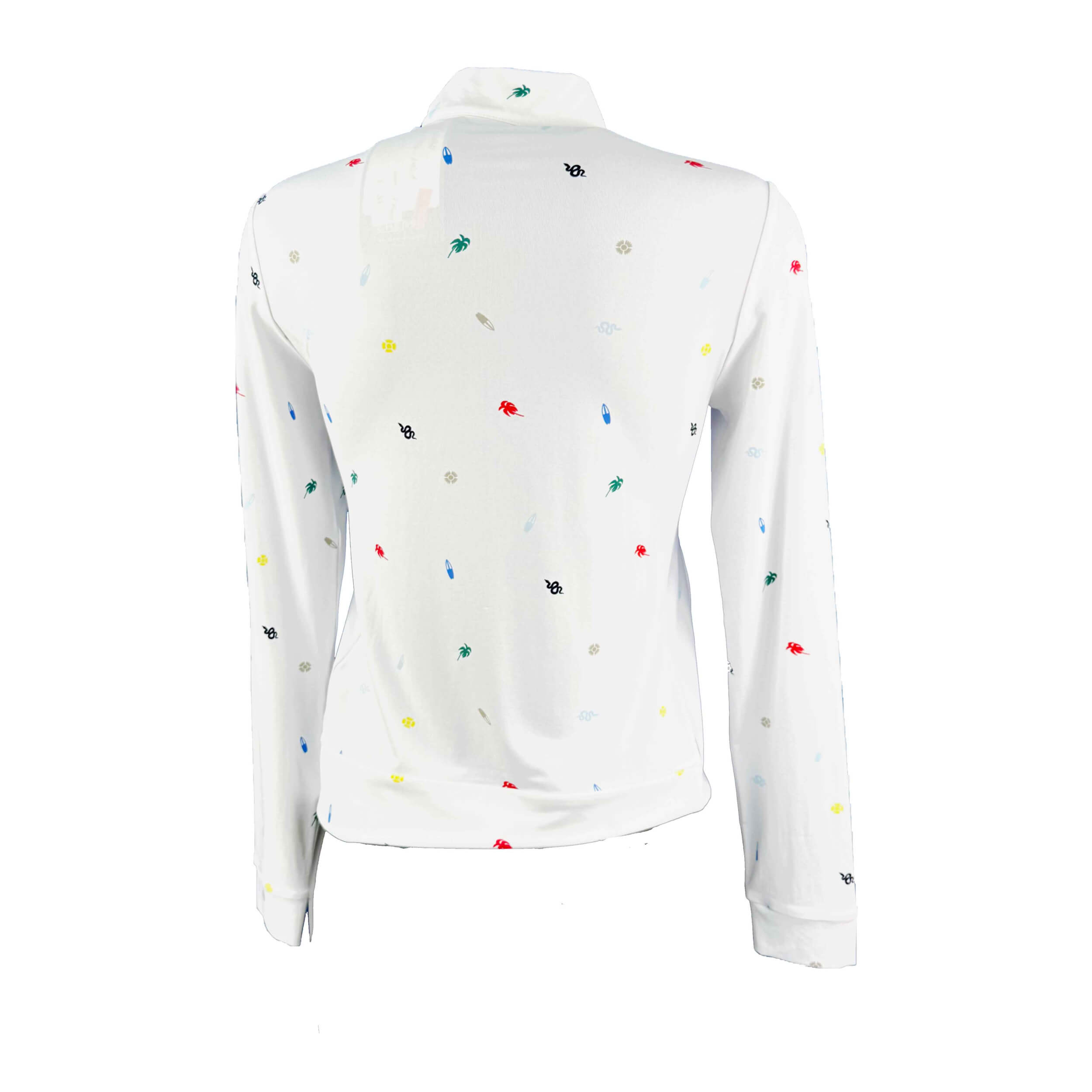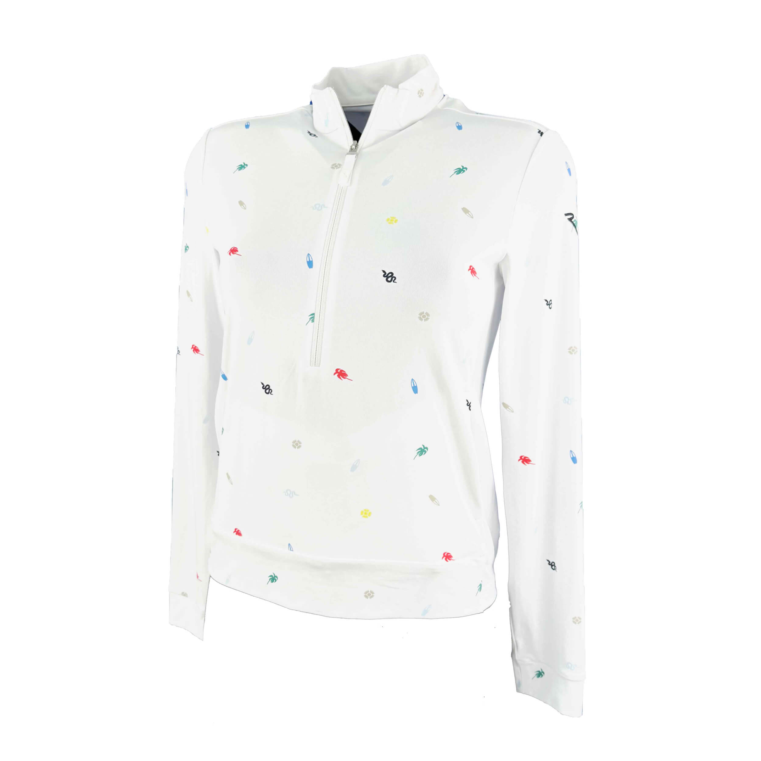 Trisha ist ein leichtes Damen-Sweatshirt mit halbem Reißverschluss und markantem Charakter, entwickelt für Komfort und Frische an warmen Tagen auf dem Golfplatz. Gefertigt aus leichtem Stretch-Jersey mit Sun-Block- und Dry-Matic-Technologien, bietet es zuverlässigen UV-Schutz und ein effektives Feuchtigkeitsmanagement während der Aktivität. Die ikonischen Allover-Prints der Kollektion, intern entworfen, prägen die Optik des Modells, während der Half-Zip für zusätzliche Funktionalität sorgt. Mit der ausgewogenen Verbindung von Stil und Performance ist Trisha ein echtes Must-have für die gesamte Sommersaison.