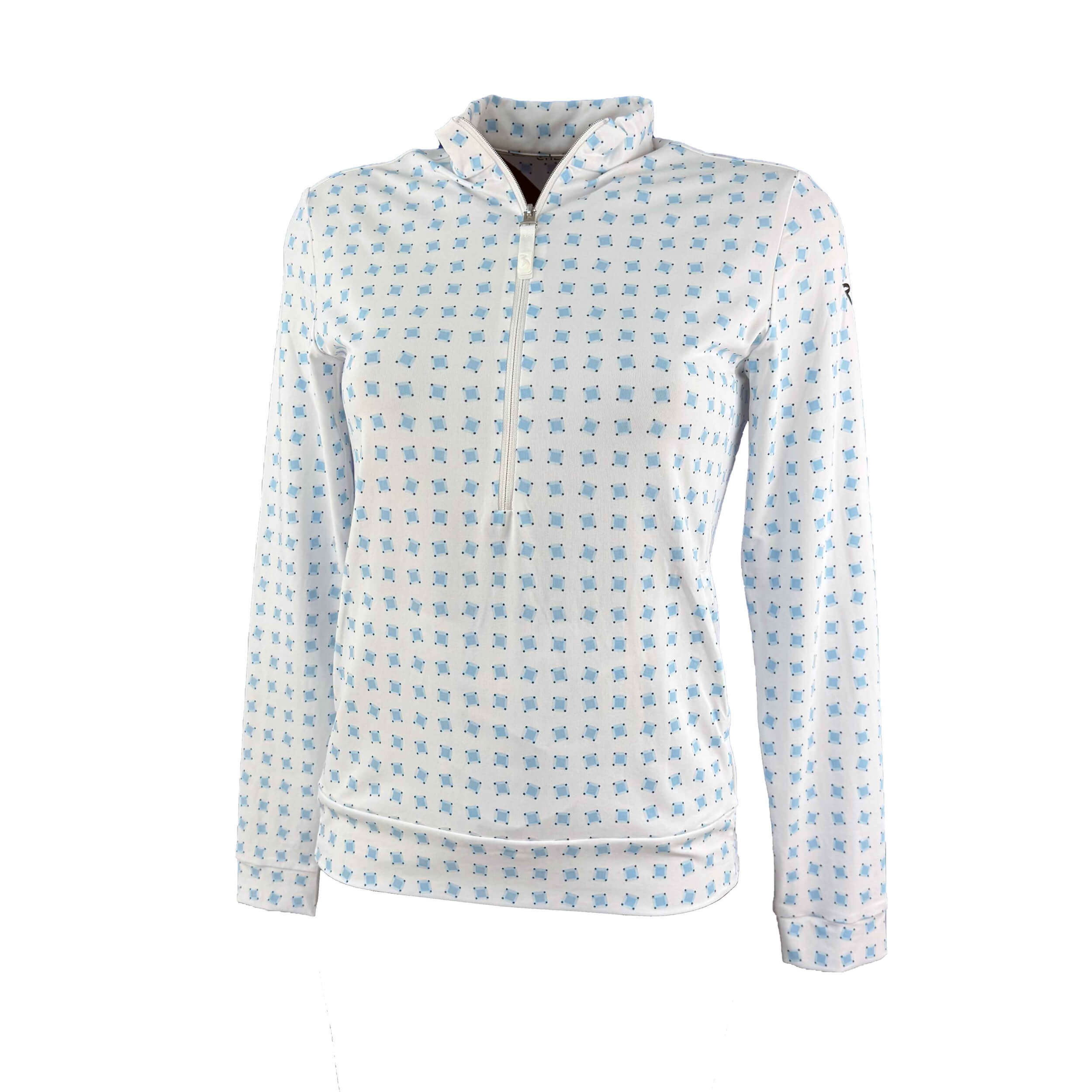 Trisha ist ein leichtes Damen-Sweatshirt mit halbem Reißverschluss und markantem Charakter, entwickelt für Komfort und Frische an warmen Tagen auf dem Golfplatz. Gefertigt aus leichtem Stretch-Jersey mit Sun-Block- und Dry-Matic-Technologien, bietet es zuverlässigen UV-Schutz und ein effektives Feuchtigkeitsmanagement während der Aktivität. Die ikonischen Allover-Prints der Kollektion, intern entworfen, prägen die Optik des Modells, während der Half-Zip für zusätzliche Funktionalität sorgt. Mit der ausgewogenen Verbindung von Stil und Performance ist Trisha ein echtes Must-have für die gesamte Sommersaison.