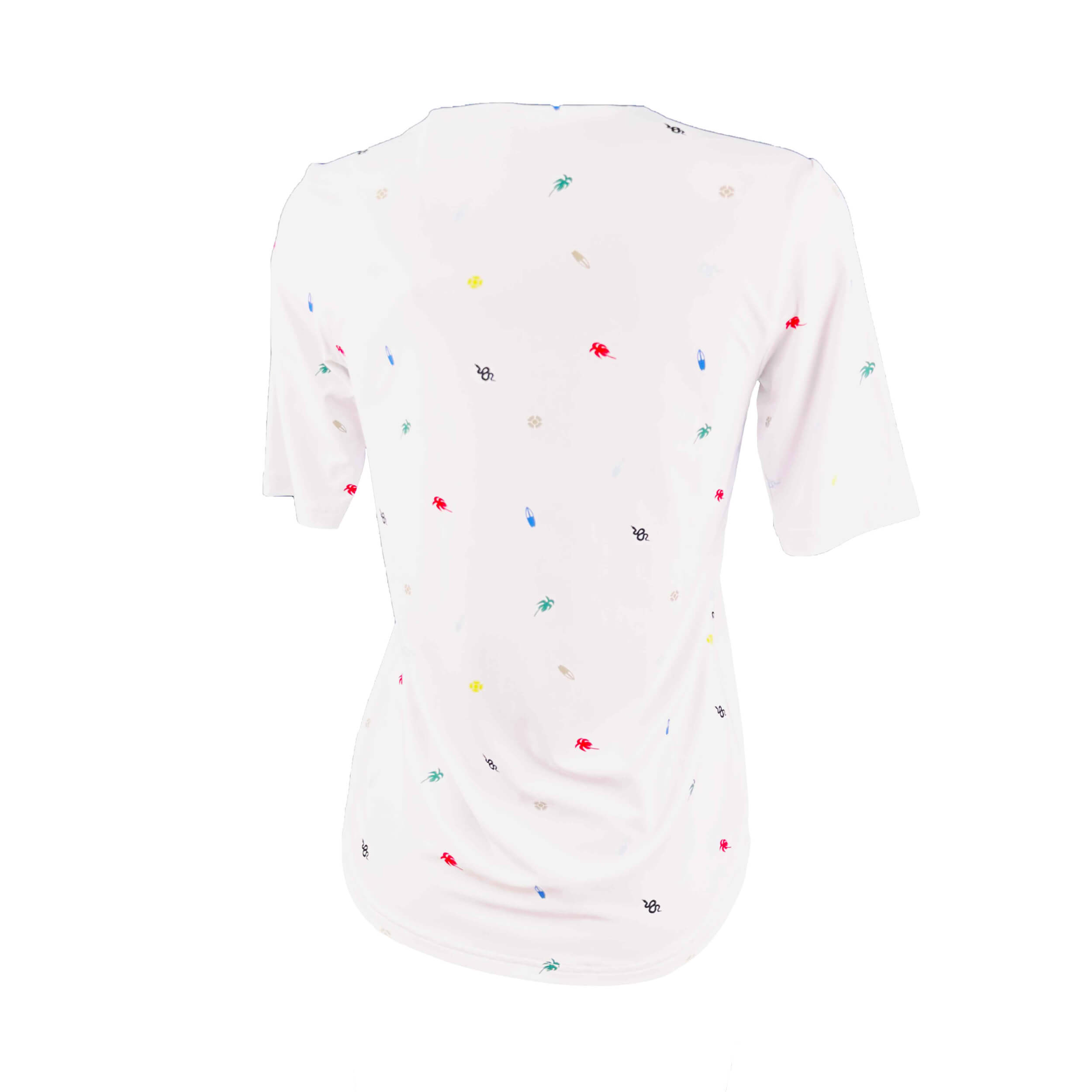 Luciana ist ein Damen-T-Shirt aus leichtem Stretch-Jersey mit leicht erhöhtem Ausschnitt und modernem, unverwechselbarem Stil – ideal für die warme Jahreszeit. Der weiche, elastische Stoff mit Sun-Block und Dry-Matic Technologie bietet UV-Schutz, hohe Atmungsaktivität und ein angenehm frisches Tragegefühl während des Spiels. Die ikonischen, hausintern entworfenen Prints der Kollektion verleihen dem Modell Dynamik und Persönlichkeit. Vielseitig und ausdrucksstark eignet es sich perfekt für den Golfplatz und die Freizeit.